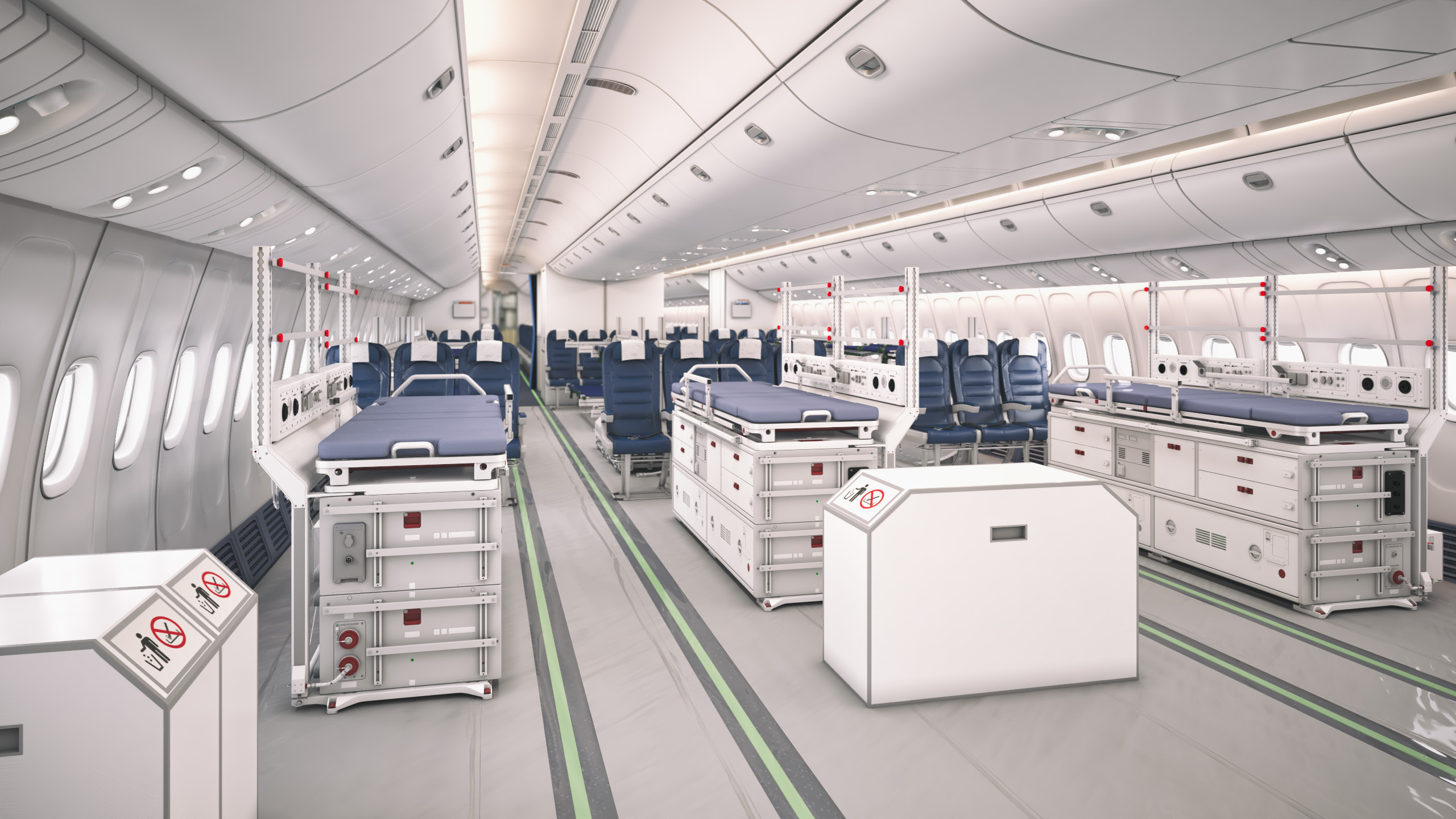 Für das AeroMedical Solutions Team der Lufthansa Technik AG entwickelten wir eine 3D-Datenstrategie inklusive eines umfangreichen digitalen Zwillings einer typischen FLugzeugkabine für medizinische Evakuierung.